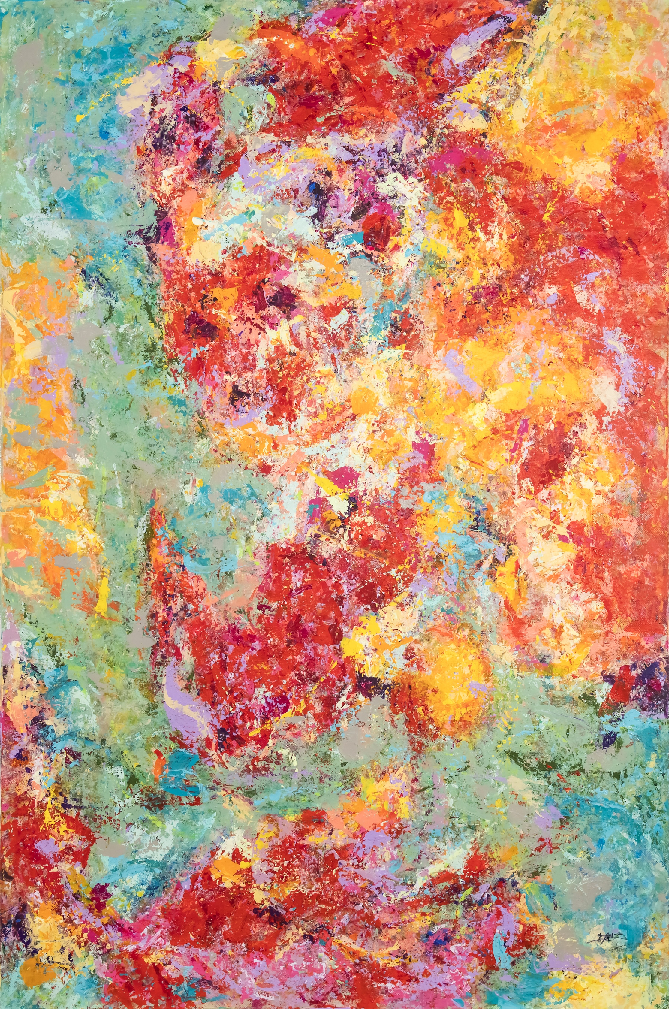 Inspired by world-famous works such as Chu Teh-Chun and Wu Guanzhong, the gentle and delicate essence of Eastern art is absorbed, the combination of fatness and the intense roughness of Western painting. The artwork 'Dream 64' shows the relationship and connection between colors reflecting and contrasting each other, and standing alone, the composition of the painting is chaotic yet orderly, and the colors are in harmony and balance with each other. The palette knife spreads the paint haphazardly across the canvas, making the painting look mighty and seamless, integrated, grand, and imposing. The colors give the work more randomness and unpredictability. This encourages the viewer to reflect on the nature of art and the creative process. This work has a complete visual structure, a clever arrangement, and balance: bright colors and strokes the pattern of an elephant is very striking and creates a strong visual impact.